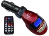 Car MP3 with FM modulator Built-in FM wireless transmitter, full-frequency radiation and totally 206 frequencies (87.5 to 108.0MHz) OLED color display of frequency, song number, LRC, volume and selection modes Automatically playing MP3/WMA format music Supporting line-in, it can connect line-out of MP3/MP4/CD/DVD and transmit songs through the unit Supporting 5 equalizer modes (natural, rock, soft, jazz and SRS) With last running status Power supply from the cigarette lighter: DC 12/24V power Infrared remote control for choosing music and frequency directly Adjustable volume